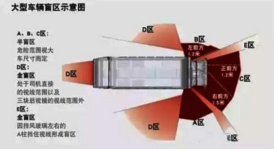 1、從貨車盲區(qū)圖中,我們可以看出貨車的盲區(qū)非常多,而其中最危險的是車輛的右側(cè)。由于大車結(jié)構(gòu)復(fù)雜,長度較長,前輪可以繞過道路的某一物體時,后輪卻繞不過去。因此遠(yuǎn)離司機(jī)視線的右側(cè)盲區(qū),就是遠(yuǎn)離鬼門關(guān)。